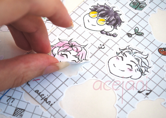 Kiss-cut stickersheets on waterproof vinyl paper with a matte finish.